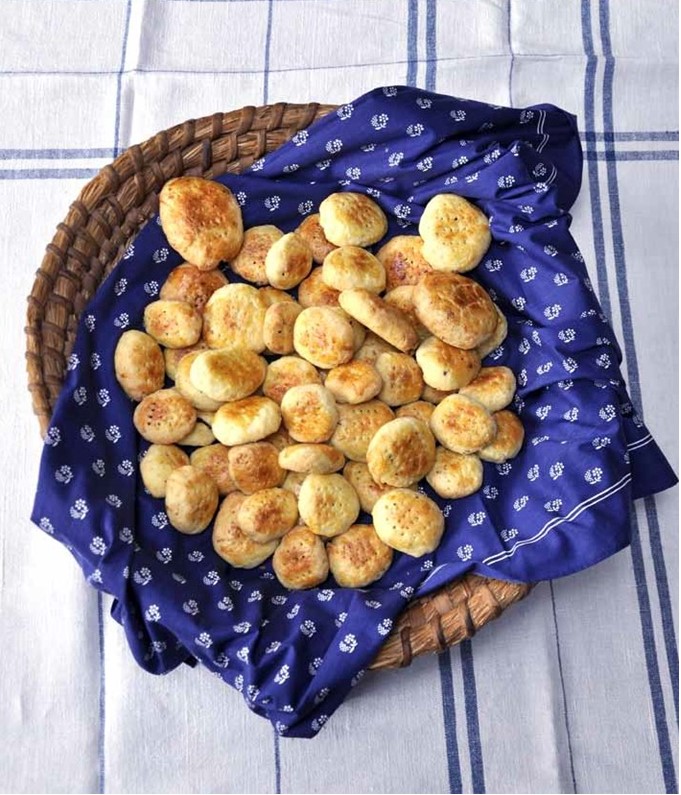 Gekochte Erdäpfel warm durchpressen, abkühlen lassen, mit Butter oder Schmalz abbröseln. Mit den übrigen Zutaten zu einem Teig verarbeiten. Den Teig ca. ½ cm stark ausrollen. Je nach gewünschter Größe Kreise ausstechen.