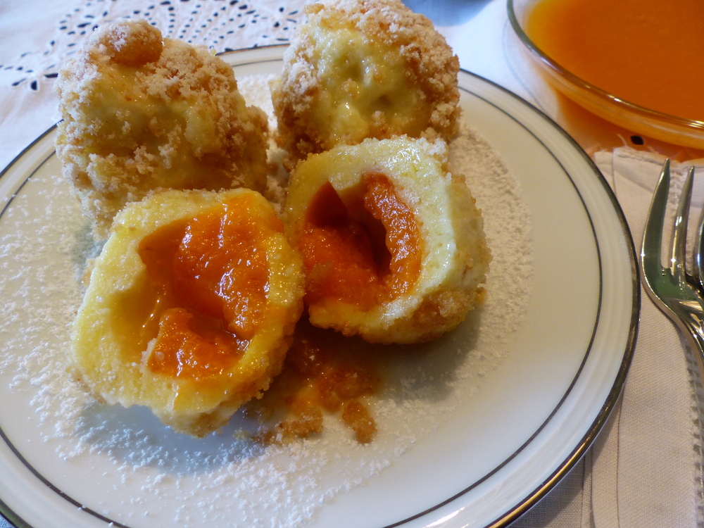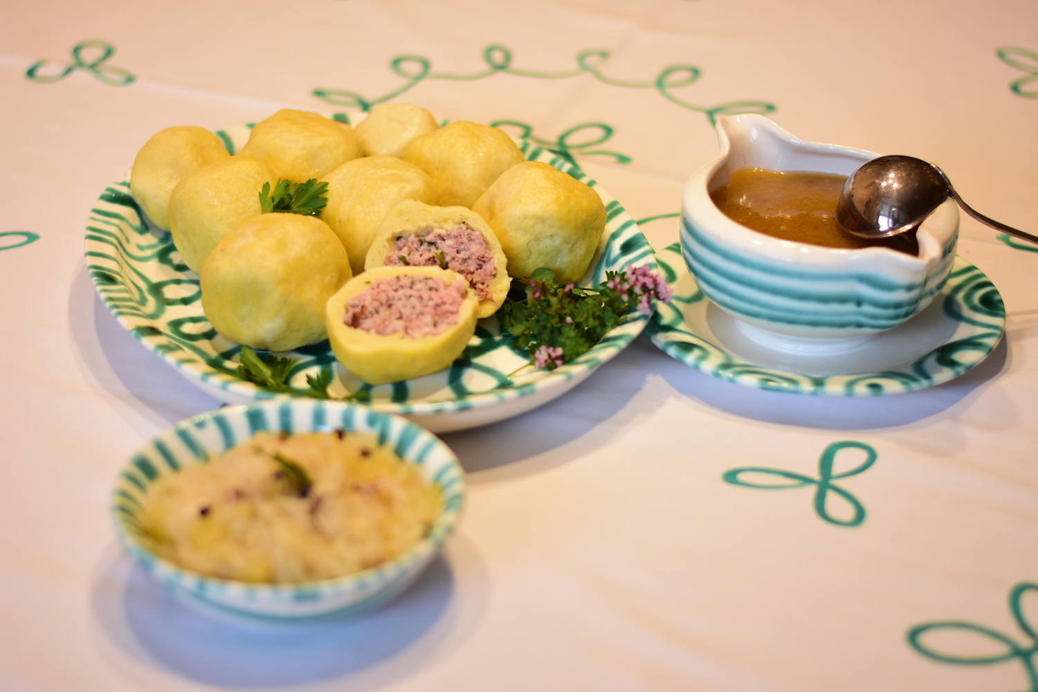 Wichtig für die Zubereitung von Erdäpfelteig sind mehlige Erdäpfel. Diese mit der Schale kochen, schälen, heiß durchpressen und mit den übrigen Zutaten zu einem Teig verarbeiten. Eine Rolle formen, Stücke abschneiden und diese mit den Daumen auseinanderdrücken, je eine Kugel der Fülle einlegen, mit nassen Händen gut verschließen und ganz fest in Mehl wälzen. Mit nassen Händen festdrücken und nochmals in Mehl wälzen, in genügend kochendes Salzwasser einlegen und je nach Größe ca. 15 – 18 Minuten zart wallend kochen, dabei beim Einlegen den Topf leicht schütteln, sodass sich die Knödel nicht am Boden anlegen.